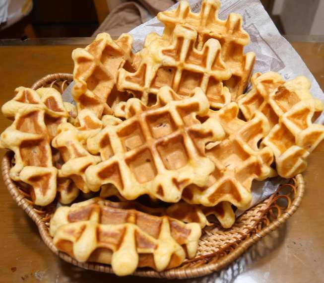 昨日はサワー種のパン生地を仕込もうと思ってたのにすっかり忘れて思い出したのは夜今朝は起きてすぐワッフル生地を仕込みましたバター溶かすのも忘れ、牛乳もないし脱脂粉乳を粉に混ぜようと思ってたのに忘れる(ーー;)油脂も忘れそうになったけど、思い出してセーフお兄ちゃんは昨日みたいな下痢もなくでも 朝は元気なくなかなか動こうとしませんね(-""-;)二度寝して 早めに起きたけど おしっこ出ないしもう一度 寝たので、起きるのを待って日中一時へ次男に手伝ってトイレへ連れて行き 車椅子に乗せました買い物して帰ったら すぐお昼お昼ご飯軽めにして ワッフル焼きました紅茶生地に栗 三宝柑ピール入りのと2種類乳製品ないからか? 甘さ控えめにしたからかジャムでも添えないと物足りない感じ( ̄▽ ̄;)今日は忘れずサワー種生地も仕込みました放置期間が長かったからか ちょっと変色してるので使ったらすぐ継ぎますお兄ちゃんを迎えに行くと今日は おしっこ一度も出てなくて・・・との事帰ったら 何か飲ませなきゃ と思ったんですが家に着いてみたら出てるじゃないですか!Σ( ̄□ ̄;)両方( >Д<;)しかも漏れちゃってるし(ーー;)何ともならず 苦肉の策で 中に着てたシャツ端を切りました((T_T))お兄ちゃん おとなしいので 何とかなったけど前みたいに動き回られたら 無理よ疲れたのか その後 お兄ちゃん寝てしまいましたずっと起きてたみたいだからね明日は大丈夫かしらね