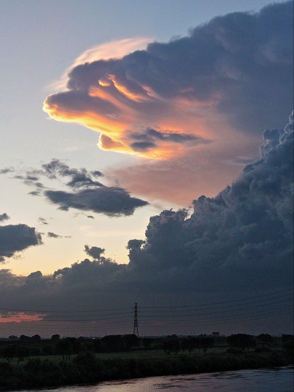 夕涼みを兼ねて、土手を散歩する。日中暑くても、朝夕が過ごしやすくなった。しばらくすると、北西の空が暗くなり、積乱雲が湧き出す。雷鳴も近い。家に戻らなくてはと思いながらも夕空を眺めた。 日中暑くなった空気は、陽が傾く頃に上昇する。上空で冷たい空気に触れて、モクモクとした雲ができる。そんな光景をこの夏よく見かけた。積乱雲の別名は、入道雲。お坊さんの「頭」に見立てたもの。 入道雲も変化する。水平方向にスーと伸びる雲を見る。空飛ぶ亀のようだったので、ガメラ雲か・・。若い頃映画で見た「宇宙怪獣ガメラ」を思わず連想した。1965年代怪獣映画に登場したキャラクターだ。東宝のゴジラ、大映のガメラと云われた。今は昔の話。 アマチア・スポーツ界にも、怪獣のような、帝王や女帝がいるという。どんなに優れた人間でも、権力の座に長くいると腐敗する・・それが人間界の法則だという人は多い。「最初は天才、最後に天災」とのキャッコピーを思い出す・・。