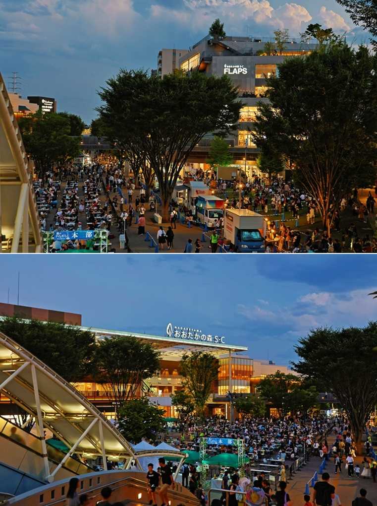 流山おおたかの森駅周辺は、新市街とも云われ、子育て世代が増加している。東武アーバンパークラインとつくばエクスプレス線が乗り入れする交通の要衝。駅南口広場は、「森のまち広場」と命名され、四季折々にイベントが開催される。暑い夏は、夜型のイベントになる。