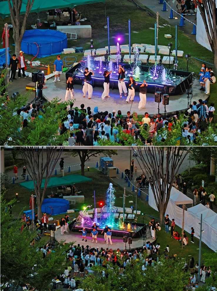 数年前から毎年、盆夏休み前に行われる「森のまち広場ナイトカフェ」がサマーナイトの風物詩となっている。ステージ傍に仮設のプールを設置して、水と光と音を楽しむイベント。ステージ前では、多くの子どもらが参加してダンスが繰り広げる。地元グルメやキッチンカーが並び、マーケットができる。 暑い時期噴水ショーが目玉で、45分ごとに約10分間放水される。時折、「おおたかの森SC」の建物より高く(約20m)、打ちあがる。花火のように・・。大量の水を使用できる環境ではないので、圧縮空気を使用しているようだ。漂ってくるグルメの香りがたまらない。「フリッシァ」なるものを食べてみた・・。 お気に入りの記事を「いいね!」で応援しよう