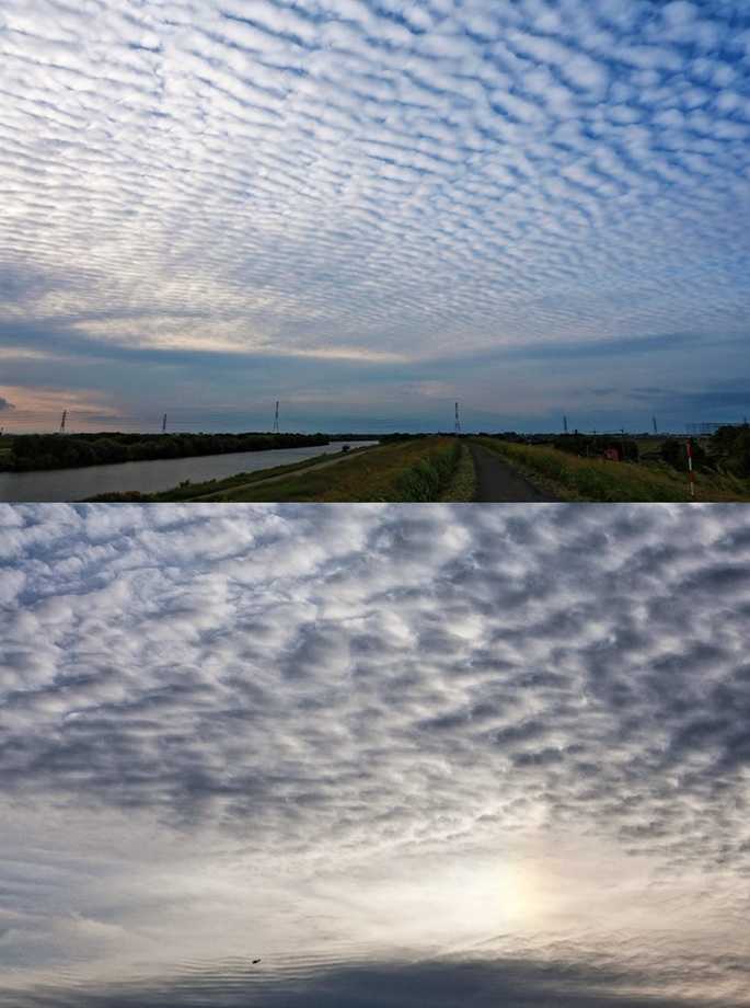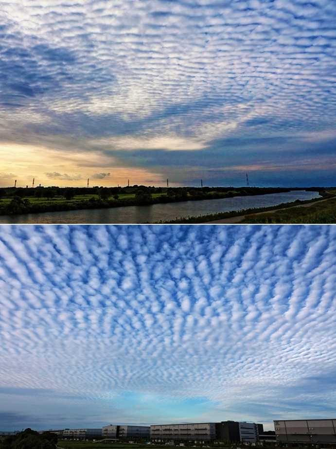 秋の風は、大陸育ちの乾いた高気圧が関東まで南下したことによる。軽い空気により、上層雲「巻積雲」が作られたのだろう。鰯雲、鯖雲、鱗雲などは、巻積雲の仲間で、見る人の感じ方よって異なるようだ。今回の雲は、サバの背紋に似ているので鯖雲とした。しかし秋刀魚雲と名付けてもよいかもしれない。 お気に入りの記事を「いいね!」で応援しよう