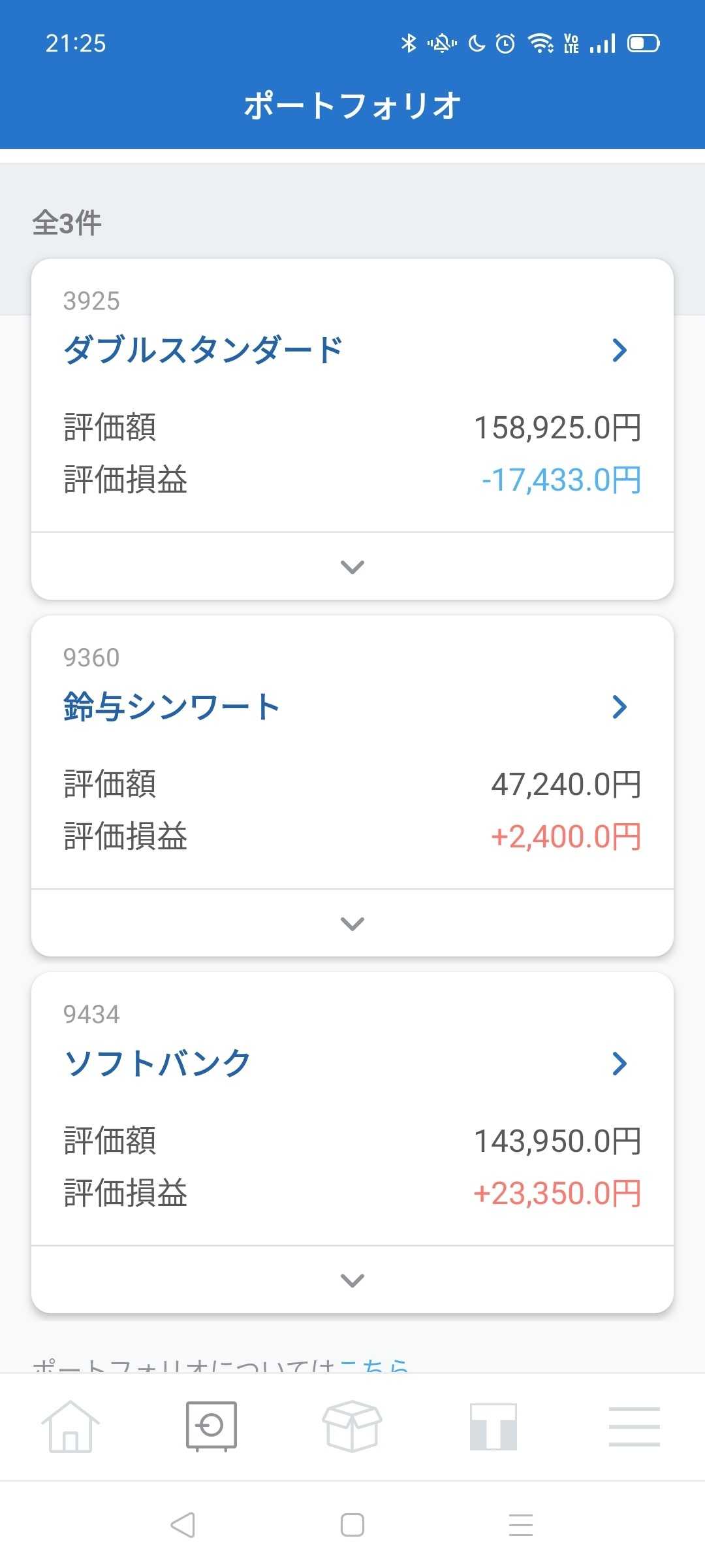 久々に投資額30万円シリーズ行きましょう。 本当は投資額増やしたーい(´;ω;`) もっともっとバブルにあやかりたーい(´;ω;`)笑 ただそんなことを言って増やしていると足元救われるので 気長にやっていきましょう( ´艸`) 本日2/25現在の資産額はこちら。 ![]() 362,027円(+62,027円) 色々利確したのもありまして、 現在の持ち株たちはこちらです。 ![]() ダブルスタンダード(3925)…39株 鈴与シンワート(9360)…20株 ソフトバンク(9434)…100株 ダブルスタンダードあがりません…( ;∀;) もう少しがんばってくれる株だと思っておったんですが… あれ、期待しすぎたかな?笑 鈴与シンワートはほんとここ最近好調です。 あがったりさがったり不安定な株ですが、 今後に期待。買い増ししたい。 ソフトバンクは言うまでもありません( ´艸`) 結構底値付近で買い増ししていけていたので満足です。 ただ失敗したのは、このキャピタルゲイン証券口座で買ってしまったこと。 なかなか長期目的で買ってしまったので利確できない…(´;ω;` もうちょいひっぱって利確します…。 1,600円付近まで行ってくれるといいな。 この高値相場で私の株たちも育っているね、ホクホク( ^)o(^ ) と思っておりましたら、よっぽど見る目がないみたい☆ みんなも勉強してから買おうね!株! 今更ながら読んでいますが、これは子供たちに読んでほしいね。 もはや宗教みたいだな。広めるよ、うん。 お気に入りの記事を「いいね!」で応援しよう