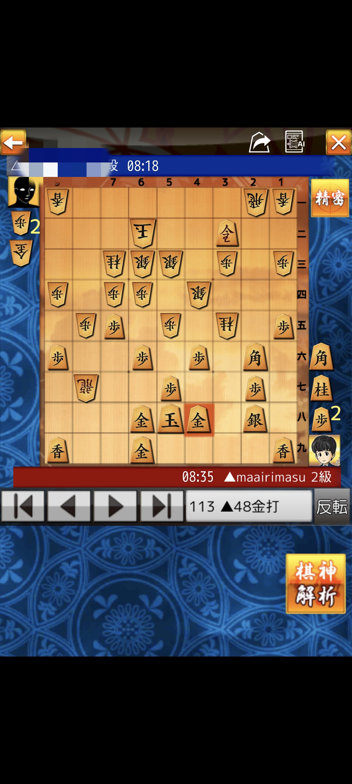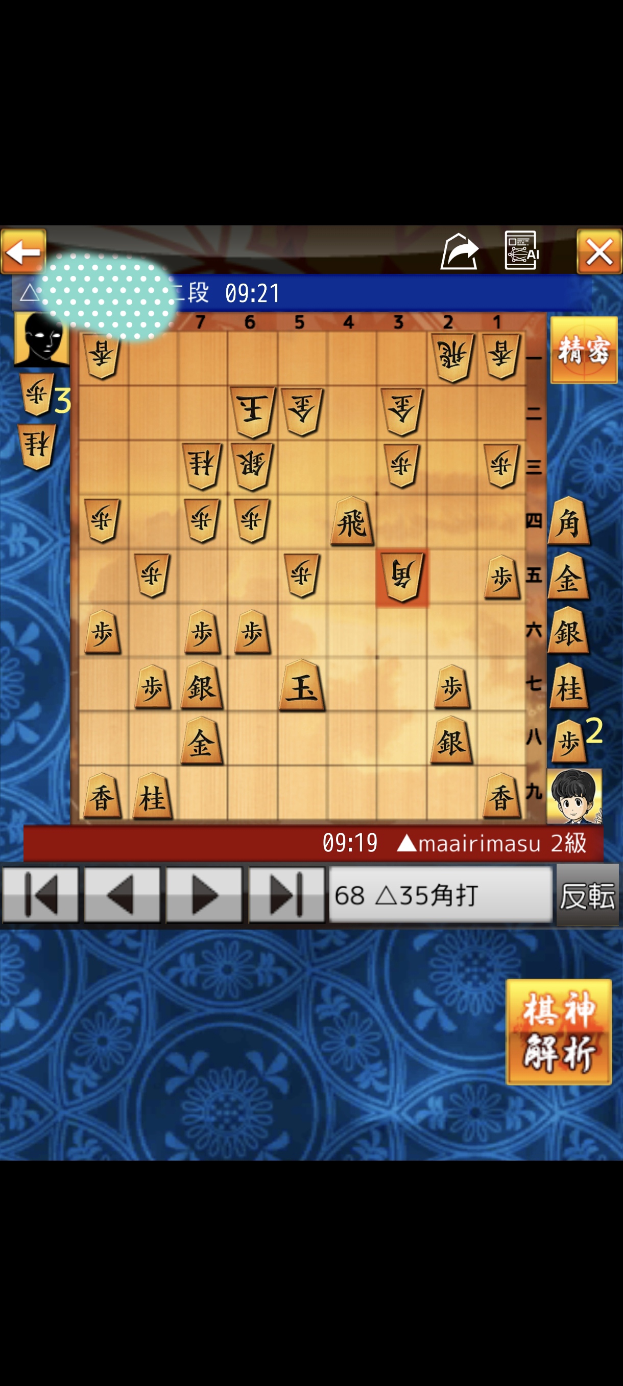 将棋ウォーズでひさびさに二段の方に勝てました