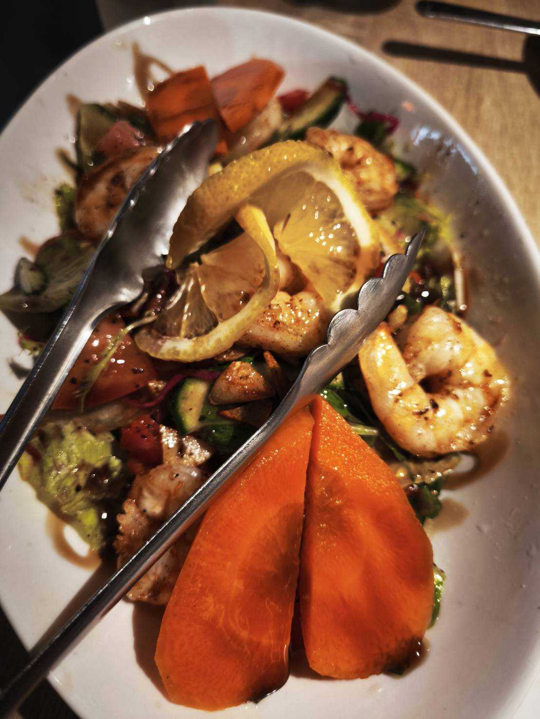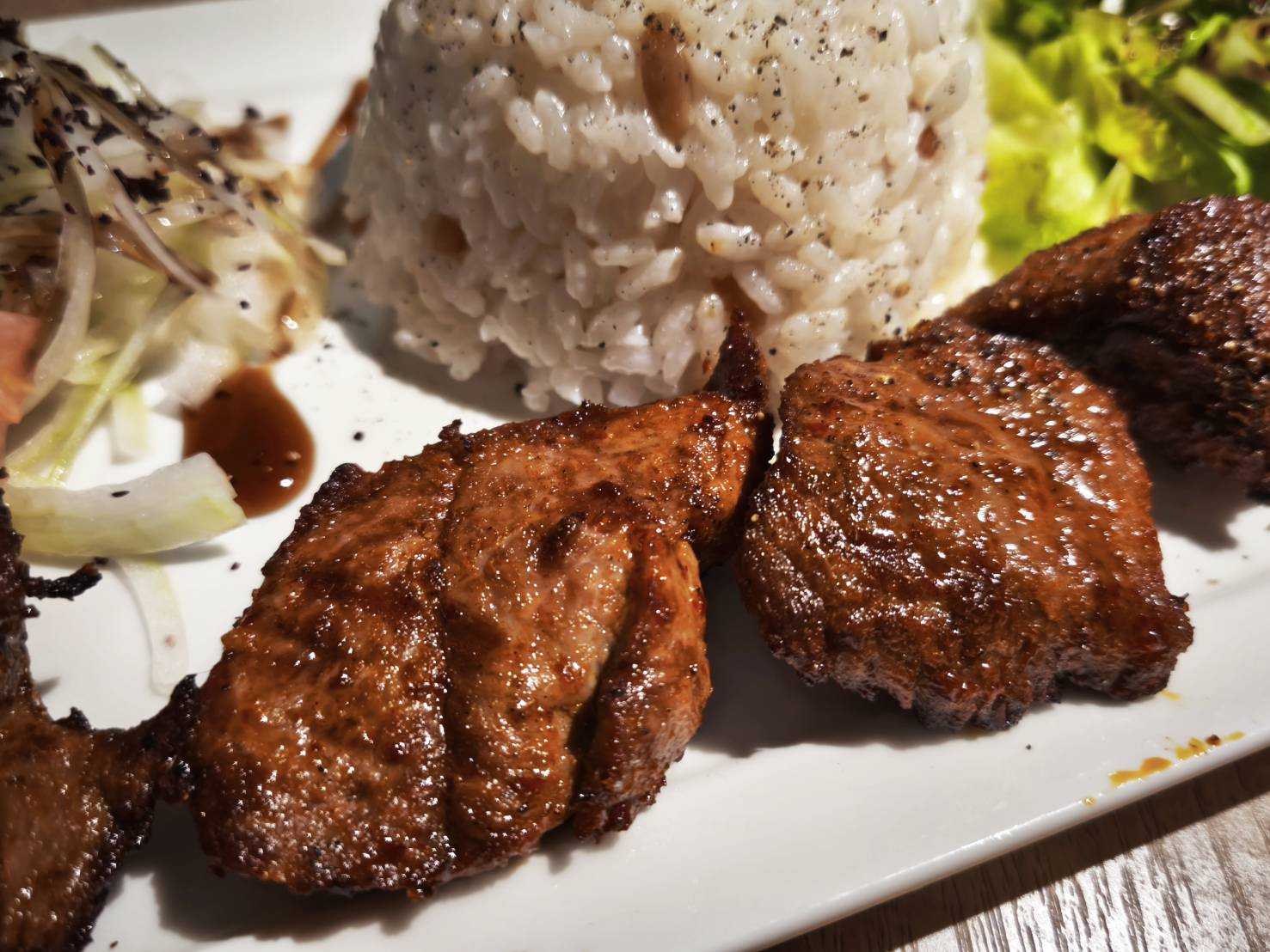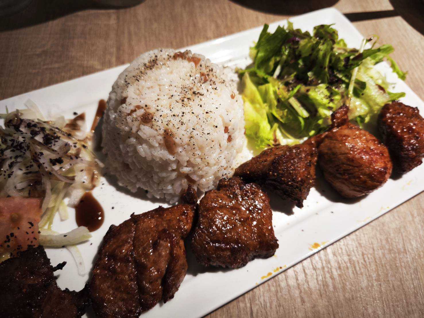 ちょい飲みセットのケバブ サラダ エビが温かい 羊のケバブ お肉のアップ