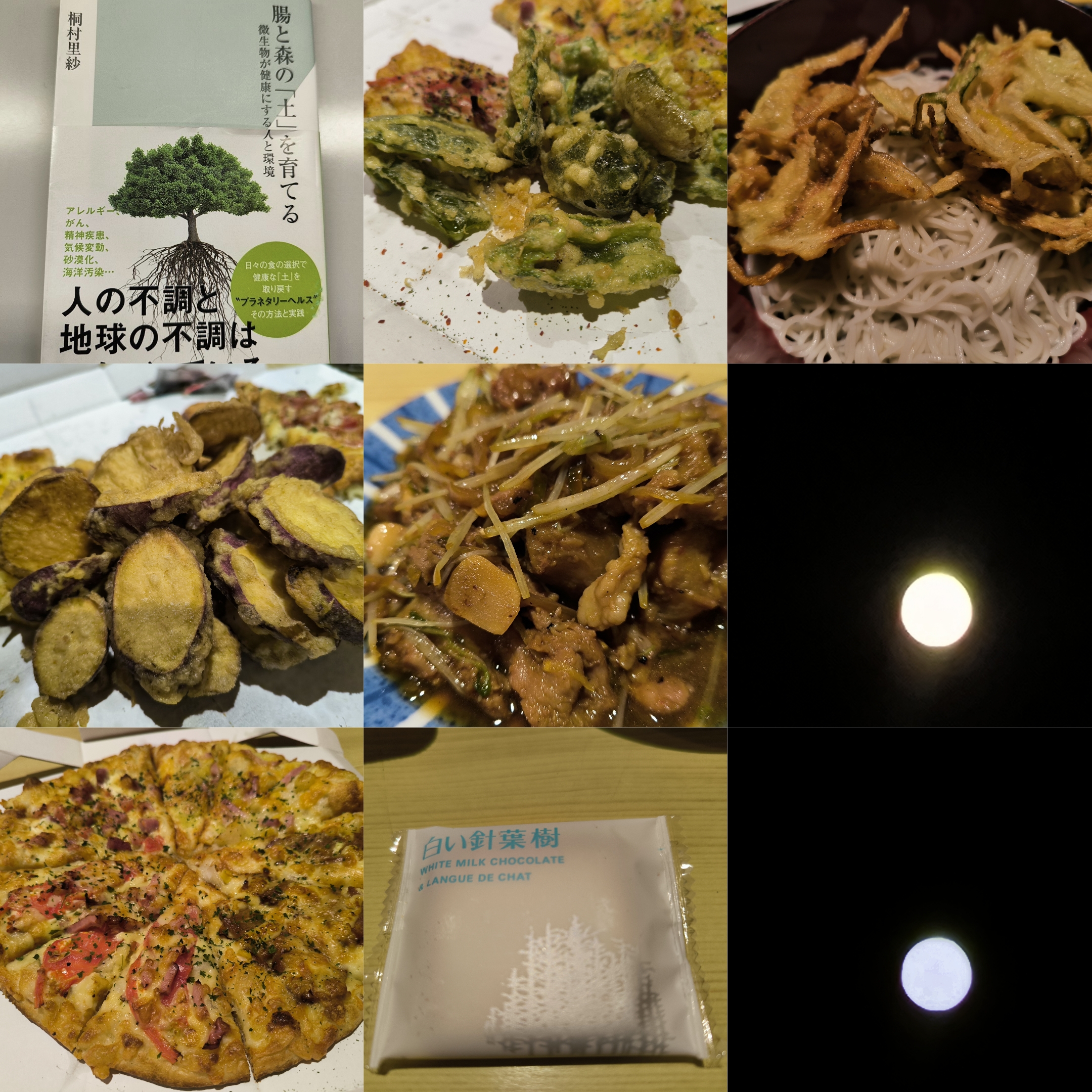 腸と森の「土」を育てる→定例会●桐村里紗さんの『腸と森の「土」を育てる-微生物が健康にする人と環境』を読みました。※一部内容に触れますのでご注意ください腸は土壌と同様に土のような働きをし、血管で全身に栄養を運ぶ。土である腸がよくなければ栄養素も吸収できない。吸収しづらい栄養素を腸内細菌が発酵やサポートをし吸収しやすい形にする。腸内に暮らす共生菌は私たちの祖先が土壌から取り込んだ細菌なので土作りが得意です。う●ちが汚いと考えているのは人間だけです。マメ科の植物は大気から窒素を土に固定できる。豊かな土もう●ちもふかふか第一の脳は腸ではないか。脳を持たない動物、腸から作られる。海水1リットルには平均30億個のウイルスが存在し知久の海水全体には4×10の30乗ものウイルスがいると試算。消化管の内腔は体外とみなされます。腸内細菌叢はアウトソーシング機関。たった1種類の病原性ウイルスの影響で美声=敵と殺菌消毒するが、手や環境を守る常在微生物までも同時に殺していることをわすれないでください。常在細菌より多い常在ウイルス。常在ウイルスは人の細胞や人と共生する常在細菌に感染して機能を変化させる。環境への適応、進化を助けている側面もある。腹を使ったため表現、腹が立つ、腹を据える。英語だとno guts,no gloryなど過敏性腸症候群の方の85%が小腸で菌が異常繁殖、通常大腸にいる菌。殺菌消毒は極力肌には使用せずどうしても手洗いできない状況でやむを得ず使用するもの。土に1種類の植物が整列する田畑は自然ですか?サプリメントは一つの栄養素は食べ物よりも多いが食べ物は全体で栄養素となる。例えばりんごの抗酸化力とビタミンC、100グラムのりんごにはビタミンCが5.7ミリグラムしか含まれていないが、ビタミンC1500ミリグラムに相当する抗酸化力があった。農薬使用量はアメリカの4倍、ロシアの約60倍。除草剤グリホサートではサルモネラ菌などは生き残る一方、ビフィズス菌や乳酸菌はダメージ受ける。日本は残留基準を引き上げた。協生農法導入で砂漠を回復。乳製品、小麦はモルヒネと同様の化学構造がある。グルテンとカゼイン注意。精製度と純度の高いお酒は注意。約90%の日本人の腸内細菌は海苔やワカメを分解できる。海苔は焼くと誰にでも消化できる。日本のメタンガス発生の1位は稲作、環境に配慮した稲作が求められる。管理放牧や林間放牧でメタンガスを減らせる。農耕民族日本人も野生肉を食べてきた。EPA、DHAの豊富な魚も餌が良くない脂を与えられると炎症系に変化してしまう。「土から離れては生きられないのよ」「土に根をおろし、風とともに生きよう。種とともに冬を越え、鳥とともに春を歌おう」ラピュタより。--面白かった。オススメです。ブログ記事(写真はこちら)●近所の居酒屋さんの定例会ピザパーティービザ4枚食べてしまってるのに〆で素麺が、でてきて美味しかったけどとても苦しかった。中秋の名月ブログ記事(写真はこちら)