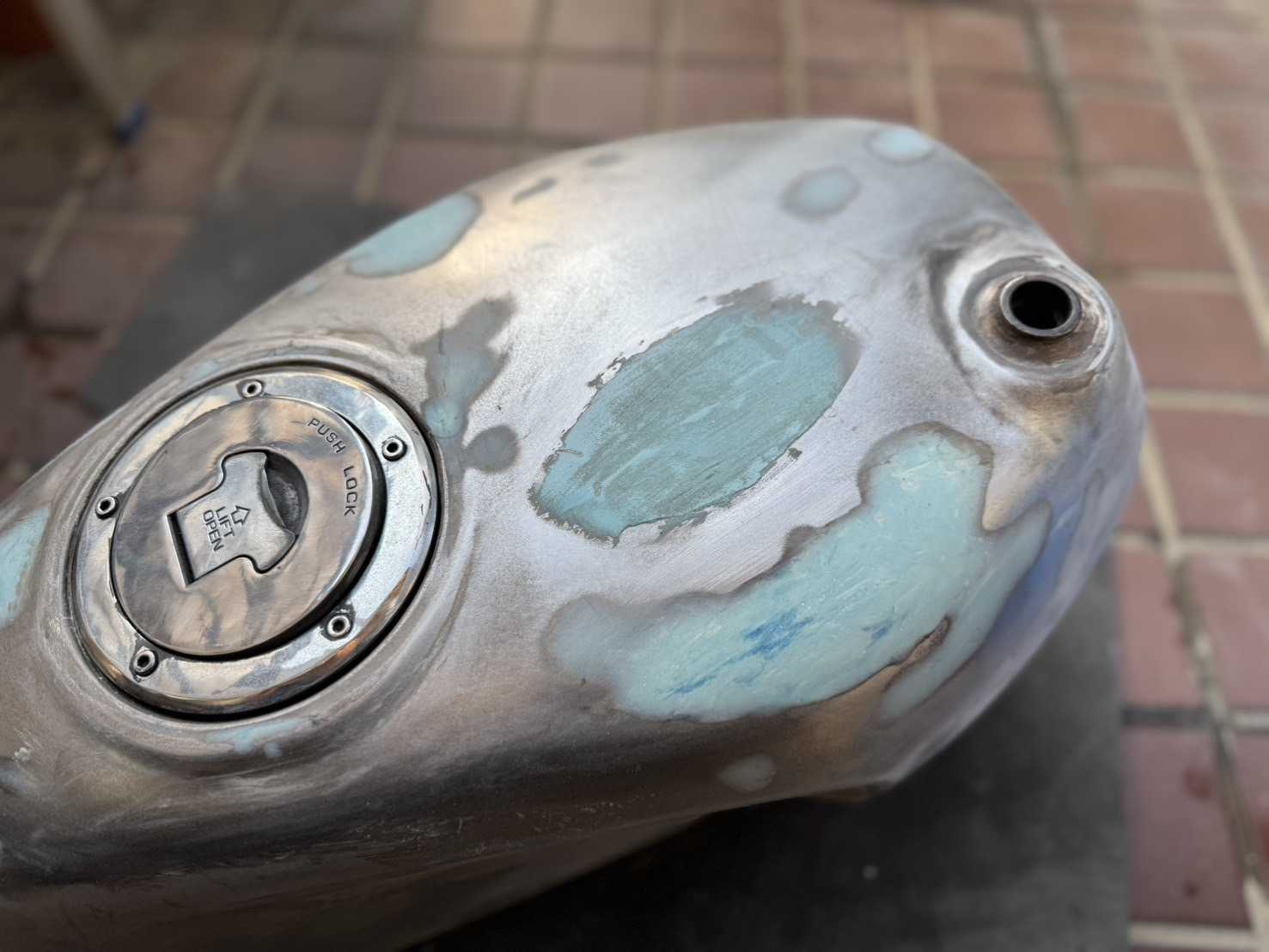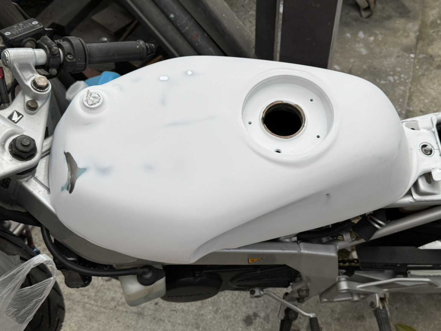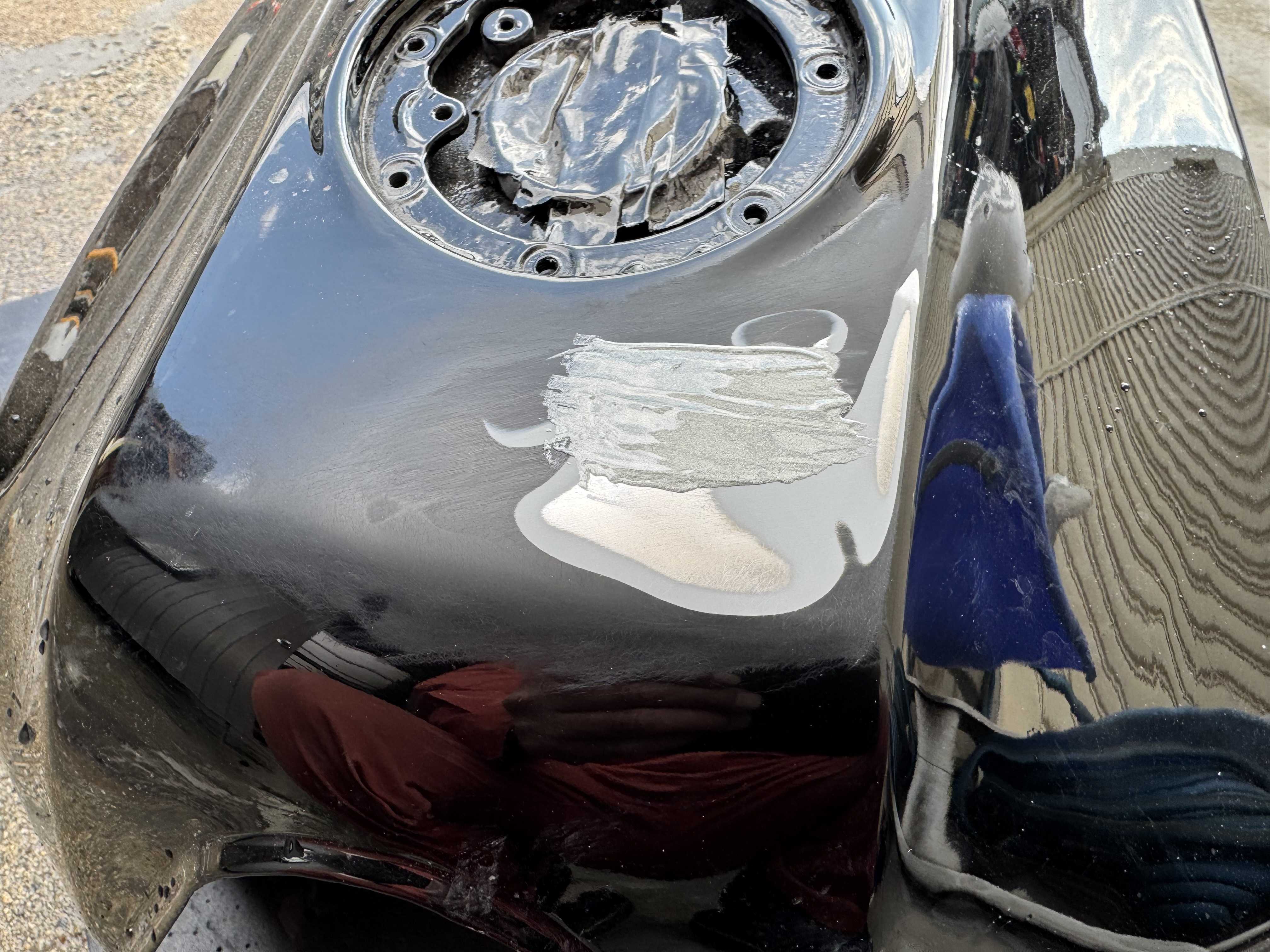 昨夜は予定通り0時に高速を降りて帰社、洗車してから帰宅し、もう一度飯食って2時に寝ました。今朝は、叩き起こされ慌てて身支度。今日は防災訓練のスタッフとして、準備する所から。いや〜、寒いがな〜(^◇^;)防災訓練で午前中は何も出来ず。午後からは、余りにも眠くて昼寝しようとしましたが、今度は消防団から休みなくLINE通知。その度に起きて読まないと行けないから、全然寝れず。14時過ぎから始めました。先週、マーヴェリックタンクの塗装したら、ちりめん塗装になってしまいました。原因はわかりませんが、硬化不良だった事には違いなく。。。今日は完全硬化してましたので、水研ぎしました。今流行りの艶消しブラック(^○^)チヂミの溝になる部分まで研いで平滑にしました。本塗りに備えてマスキング。デカールを保護。この後、周囲を切り抜くのですが、繊細な作業は骨が折れます。老眼鏡使えば良かったかな。ひと段落したら、これも先週の作業の続き。欠損してたNSRのカウルに金網補強でメタルパテを使って復元。。。2箇所穴が開いてます。数回塗り重ねる予定してたので問題無し。裏側にパテが多く流れてたので、余分な所はサンダーで削り落とし、そこにパテ入れ。夜には硬化してましたので、明日にでも表側を修正します。金属用接着剤 【メール便 送料無料】 エポキシ樹脂 大容量100g 次世代型接着補修材 金属接着剤 耐熱パテ 金属パテ メタルボンド タンク エンジン マフラー シンク 配管 補修 修理 溶接 穴埋め 亀裂 メタル リペア 腐食パテ ラジエター 木材 プラスチック 布 ガラス夕方、消防団のお仕事であちこち走って来ました。帰宅したら、もう夕食どき。食後にママを連れて管理物件の蛍光灯4本交換。同行したままにはご褒美です。さっき飯食ったのに欲しくなるんですな。おいらのご褒美は、ママが欲しい物のお裾分けです(^◇^;)